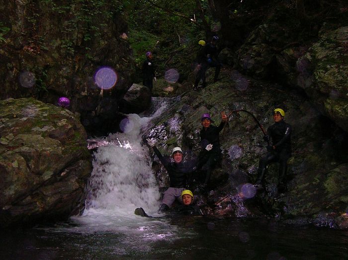 しかし、レベル1のゴール地点まで戻ってくると、後は比較的緩やかな流れ。気楽に滝壺に飛び込んだり、岩肌をスライディングしながら、時には川の流れに身を任せぷかぷか浮きながら帰ることができました![]()